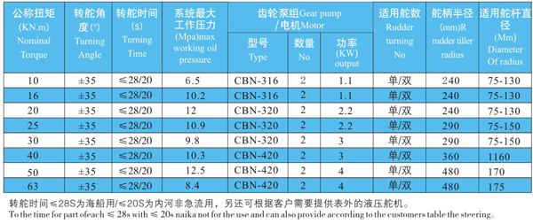 一、产品简介 本系列舵机采用手动换向阀控制,推舵机构为摆缸式。在系统中有蓄能器,为应急能源,转舵时间能广泛调节。此舵机适用于货船、客船、推拖船、沿海渔船及军船等各种船舶。适用于各类航区。